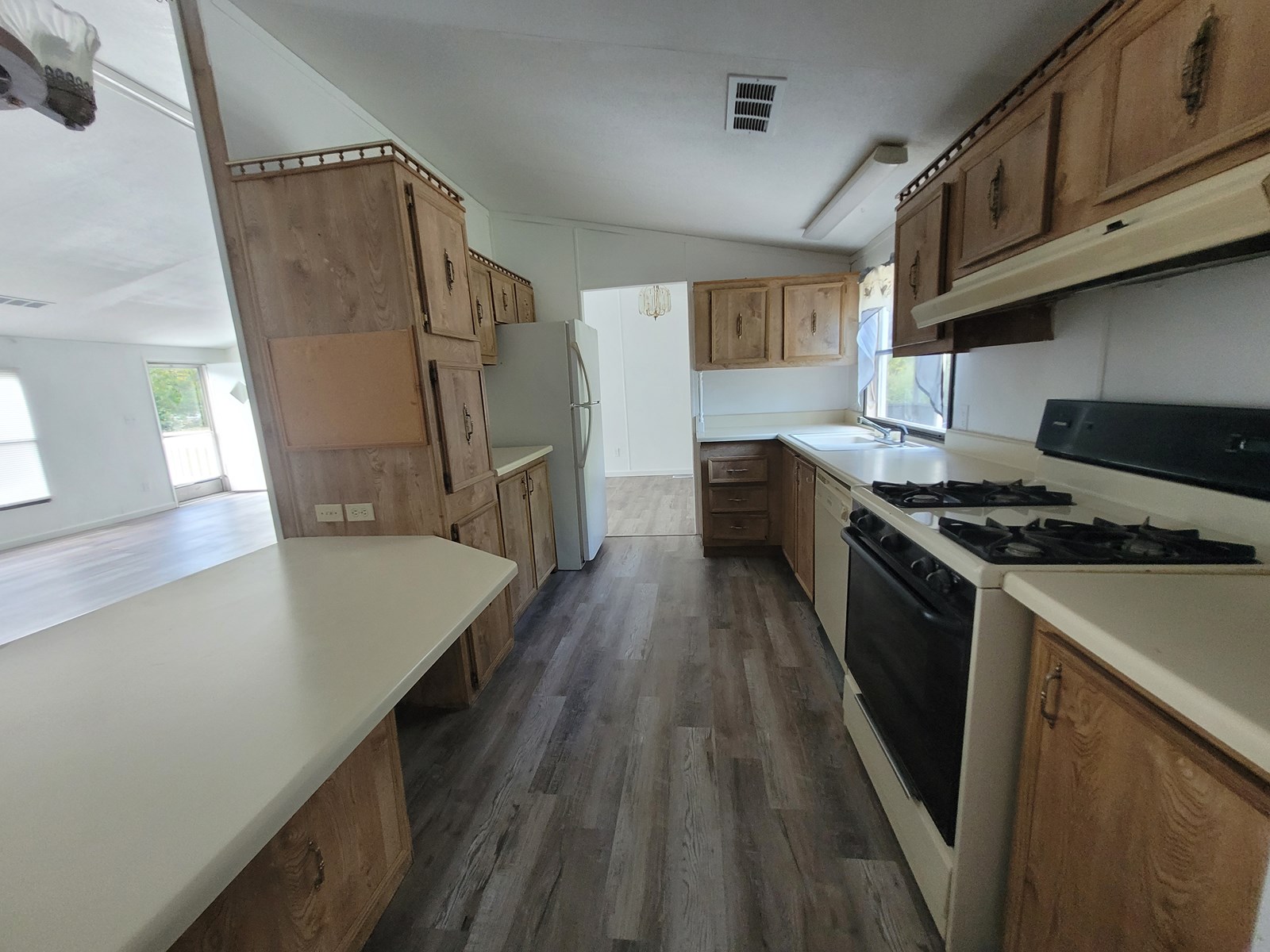 Nestled in the heart of town, this inviting three-bedroom, two-bath mobile home offers a peaceful and comfortable lifestyle. The spacious living room, seamlessly connected to the open kitchen, creates a welcoming atmosphere for entertaining guests or simply relaxing. A cozy kitchen nook provides a casual dining area, while the second living room, complete with a fireplace, offers a versatile space that can be used as a formal dining room or den.